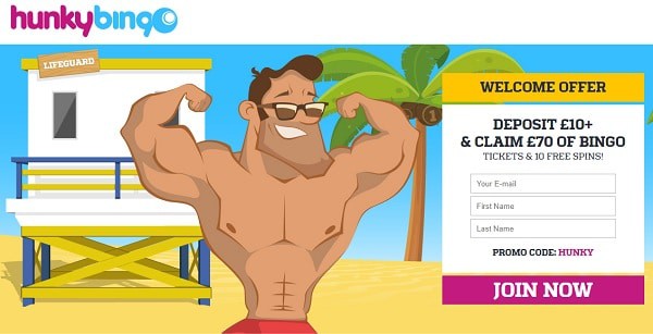Key T&Cs:First-time depositors only. Min deposit: £10 with code: HUNKY Max offer: Bingo Tickets worth £70 (60 tickets worth £30 on Street Party and 4 tickets worth £40 on Big Bang) plus 10 Free Spins (on Fluffy Favourites with winnings capped at £1). Free Spins expire after 7 days. All winnings will be credited to your real money bankroll. Deposit balance is available for withdrawal at any time further T&Cs and full T&Cs apply.