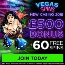 Vegas Spins has an awesome Welcome Package that gives new comers plenty of opportunity to keep spinning the Vegas Wheel and win big! New comers can get up to a generous £500 plus 60 Free Spins for a few of their exciting slot games. Three deposits are required to earn the maximum bonuses and will be credited as Bonus Funds. Terms and Info on this promotion and other current player promotions can be found under the “Promotions” section of the Vegas Spins website.